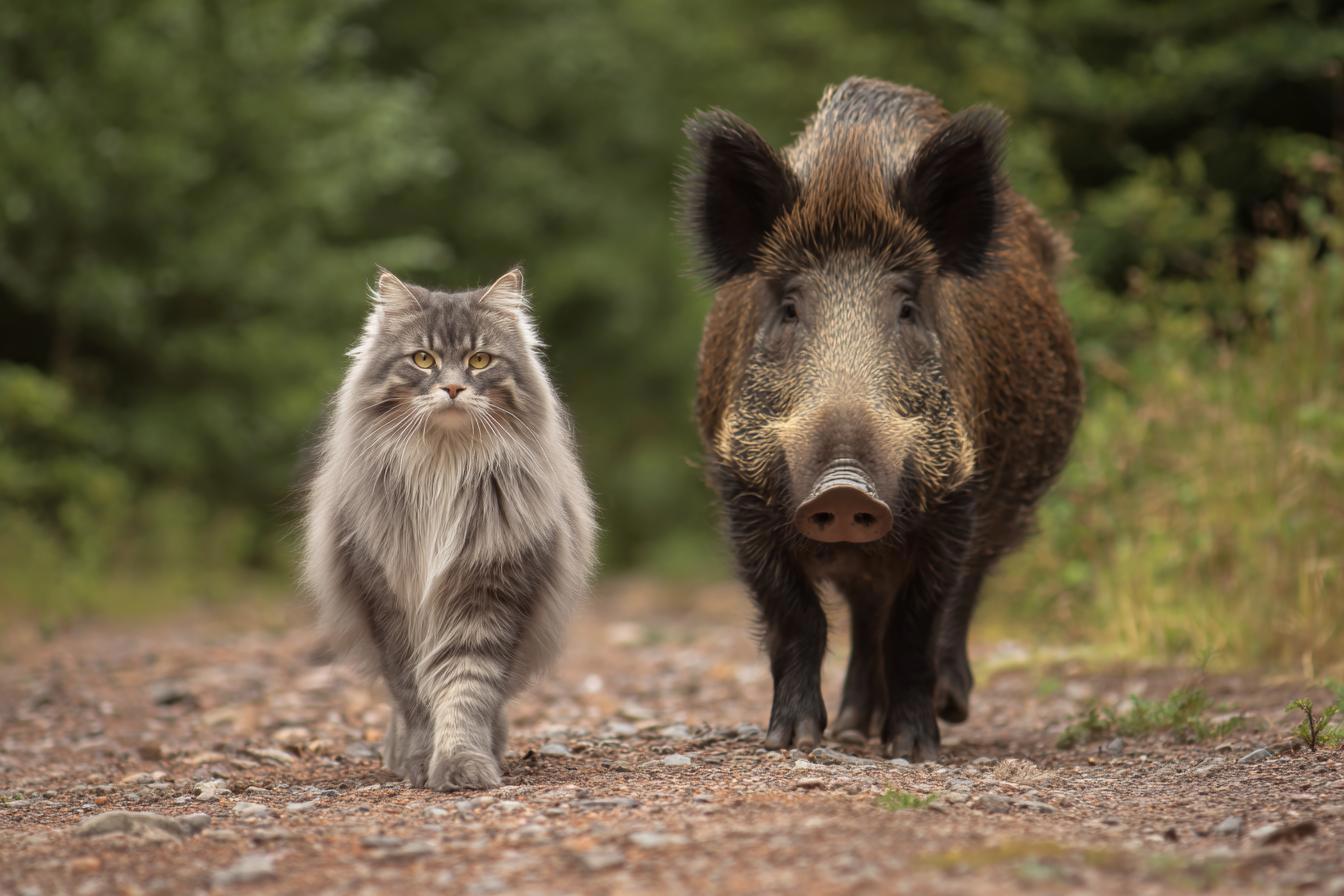 An alien big cat sighting where the woods are filled with wild boars sounds plausible, so residents of the German town of Altenahr in the border region between Rhineland-Palatinate and North Rhine-Westphalia are understandably worried after a hunter using a night vision camera captured video of what appears to be a large wild cat; previous sightings in the area turned out to be a wild boar, but this one moves more like a big cat; however, as the video was spread across social media sites, a woman contacted the Altenahr Municipal Association to say she had moved from the area from northern Germany with her Maine Coon cat, an extremely large breed of house cats, and it escaped, causing her to suspect (and hope) this is her cat; the government also received an unidentified fecal sample from the area which was picked up by the same hunter and sent it to a lab for analysis – the results were not in at the time of this writing. Do wild boars eat Maine Coon cats? (Asking for a cat-loving friend.)